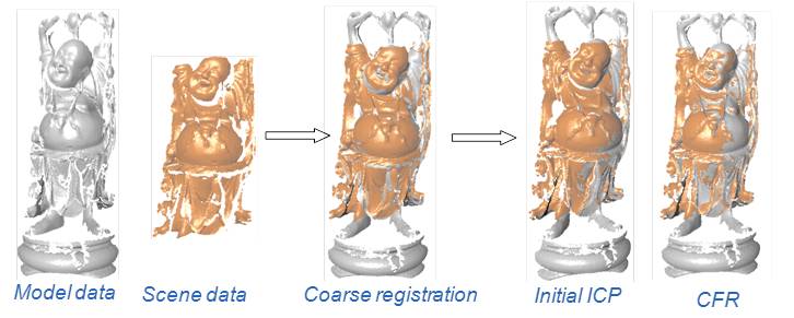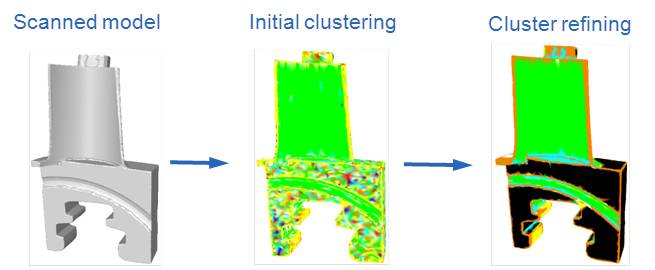 In addition, a new approach for the identification of the bend lines and the partitioning of a point cloud obtained from a laser-plane sensor was also implemented as part of a collaborative project. The idea, taken from what is known as the "scale-space" method, consists in processing the point cloud on different scales. Thus, it is possible to benefit from the advantages of each scale being studied. Large scales make the treatment of dense local information easier while small scales enable the data related to the global geometry of the digitized part to be saved.
